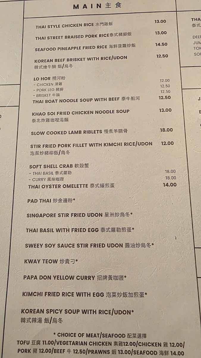 “ The PaPaDon situates quitely on a side road of Stretford- the Longford Street Road. You may pass over the Restaurant when arriving at the front door. There is little bit of puzzle wondering " where is the restaurant whenever you stand at the front of it. Until you raise your head to notify the shop sign. Outlook of this Thai-Korean restaurant in the first glance is not attractive but the authentic northern Thai foods are at a premium quality. I had a visit on last Sunday at noon having no reservation. It was my luck to have a table for a couple because the table reservations were full. I arrived just at time of opening at 12:00 noon. The dining hall was hygiene, tidy and the cooking smell from the kitchen was none. Albeit the Restauarnt is not spacious, it can serve about 24 people. "The boat noodle soup with beef" is the signature which I can recommend. The beef briskets were tendered at a just medium rare. The tick beef soup is fantastic surprise, not salty but had a thick tast of fresh beef. "The salt and pepper meaty ribs" is a must to try. The deep- fried ribs meaty were just fried, not having dry and hard tast. The big dish were cladded with deep-fried garlic in pepper salt. I finished up this stuff and made empty of the plate. The Korean Gimbap gave me the a degree of disappointment as the rice textures were loose because of ingredients of none Korean rice. As a whole of the Gimbap, the rice textures must press hard to make them stick together. The Restaurant is run by two young men. He is friendly and polite. Young Men cheer up to run your Thai Korean restaurant. ”